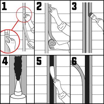 5.シーリング剤の表面に川がはる前にヘラで押さえ、ヘラならしで仕上げをします。